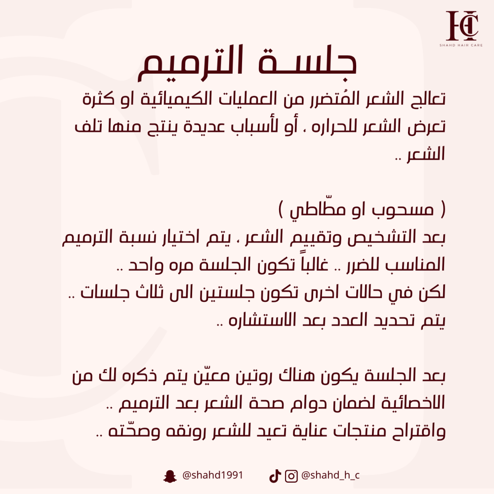 ✨ امنحي شعرك العناية التي يستحقها مع جلساتنا المتخصصة لترميم الشعر . احجزي الآن لتبدأي رحلتك نحو شعر أكثر صحة وجمالًا !